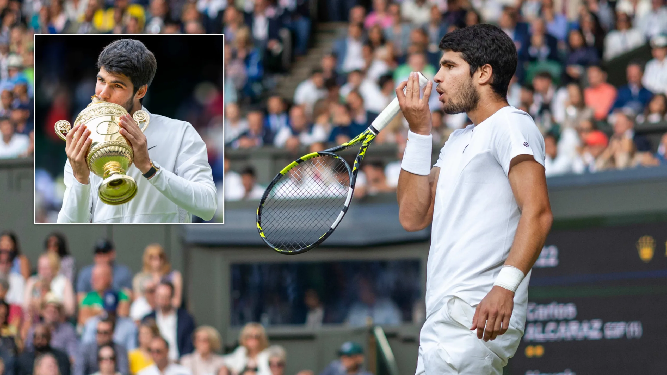 Alcaraz’s 2023 Wimbledon racquet fetched $173,066 at auction, a new record for tennis racquets. Sold.
