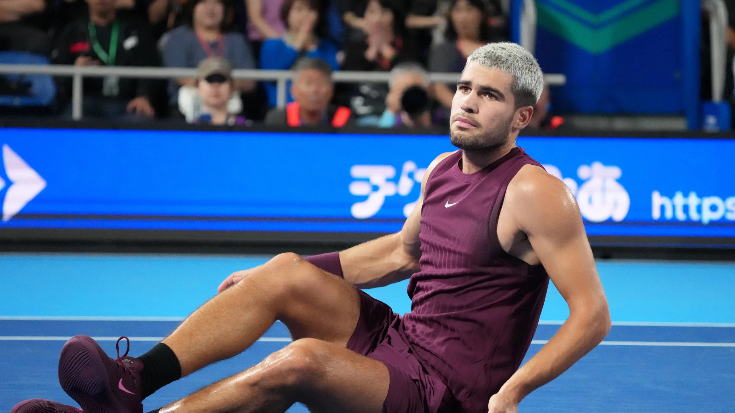 The world No. 1 fell in the first set and was visibly uncomfortable, rubbing his eyes and holding his left ankle before receiving medical attention. The fall left him shaken; he said he was “scared” when it happened.