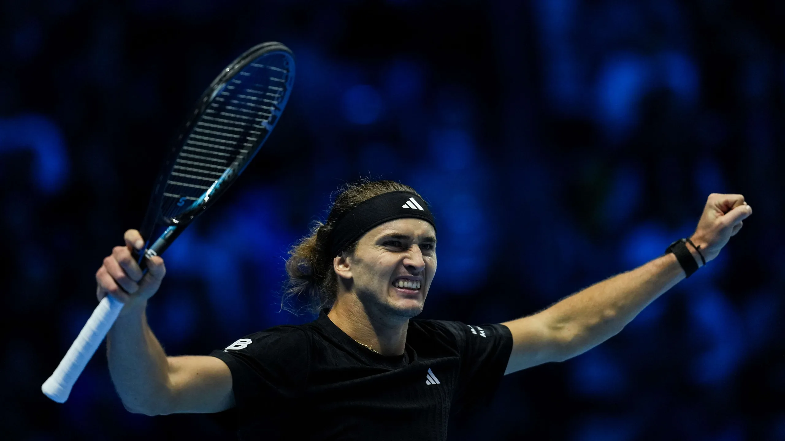 Alcaraz and Zverev both won opening matches in Turin; Alcaraz edged De Minaur, Zverev beat Shelton..