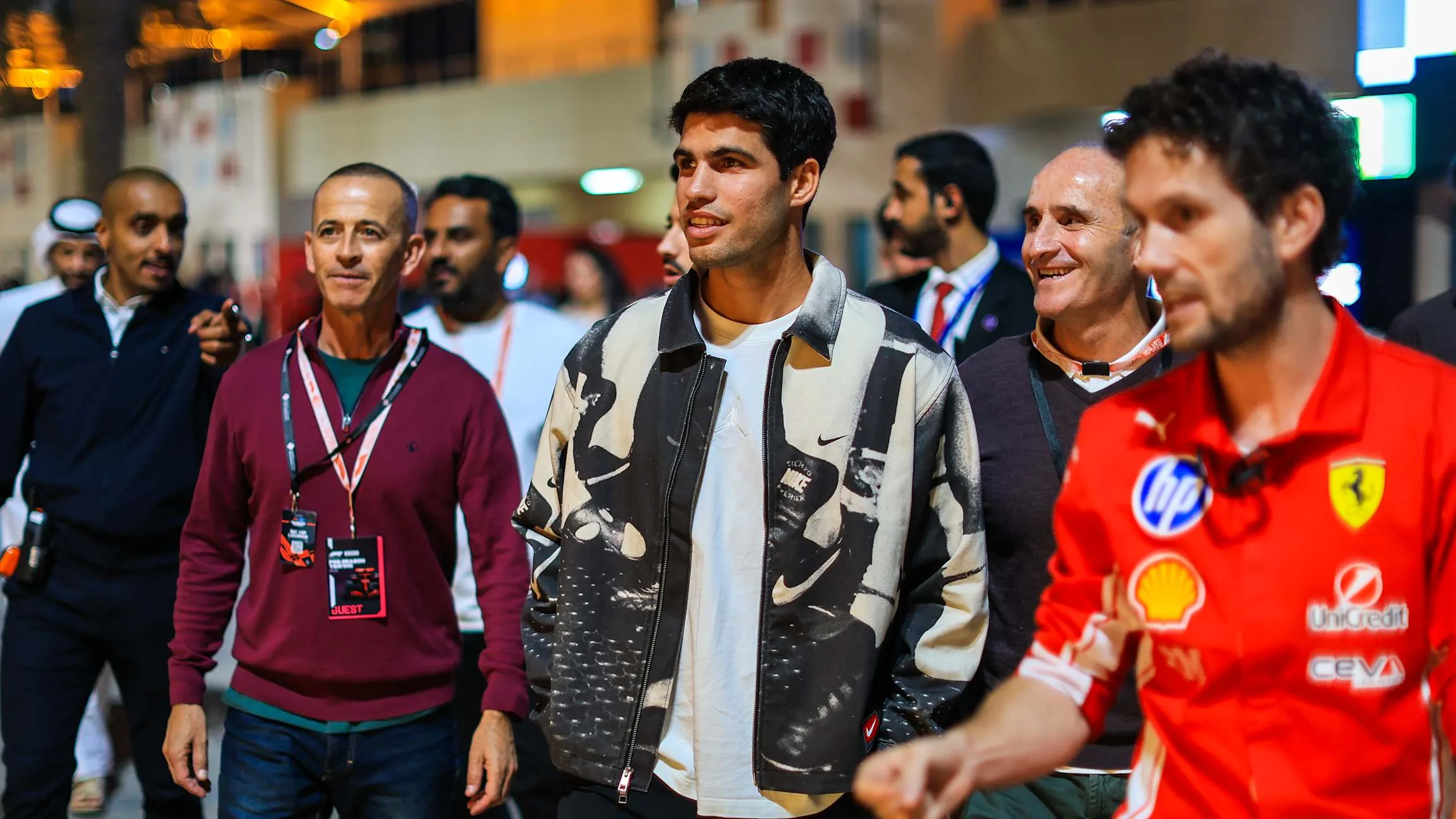 Carlos Alcaraz made a brief detour to the Formula One paddock at pre-season testing in Bahrain ahead of his return to the ATP tour at the Qatar ExxonMobil Open in Doha. He visited the McLaren and Ferrari garages and met several figures from the paddock, including Fernando Alonso, Carlos Sainz and Lewis Hamilton.