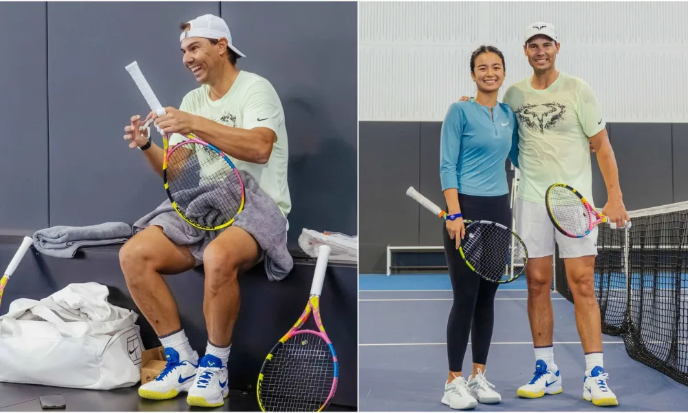 One year after his last match, Nadal returned to the court for a practice session with Eala in 2025