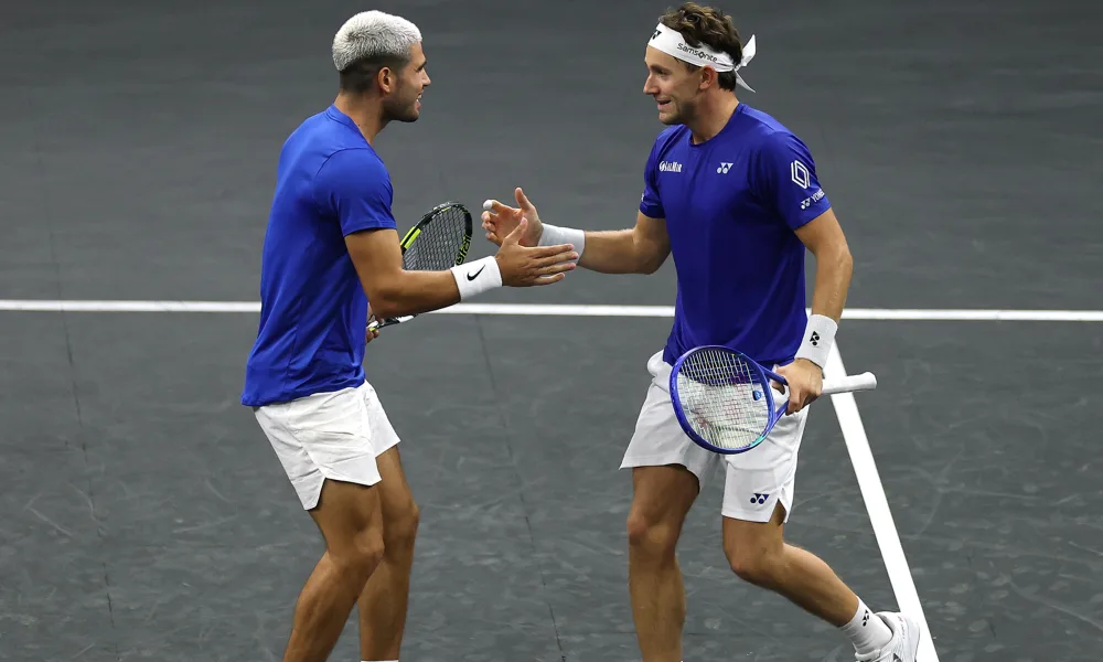 Alcaraz and Ruud opened Day 3 with a doubles win, aiming to mirror last year's Laver Cup comeback..