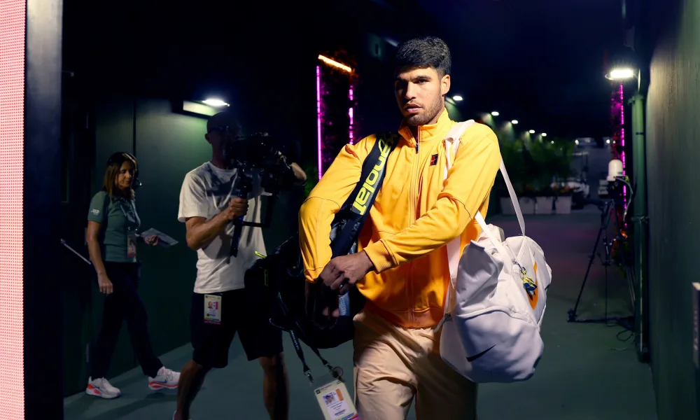 Alcaraz stretched his unbeaten start to 2026 to 14 matches and joked opponents feel like Federer...