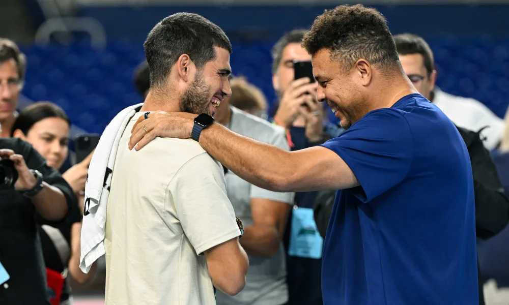 Alcaraz hit with Ronaldo, clipped his face with a volley, then edged Fonseca in a tiebreak. 10-8 win